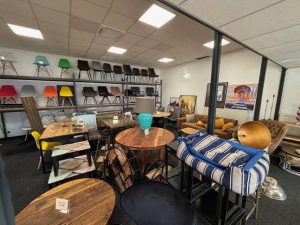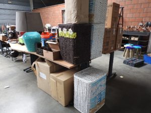 • Grote partij diverse winkelvoorraad meubels (stoelen, banken, tafels, kasten, lampen, e.d.);