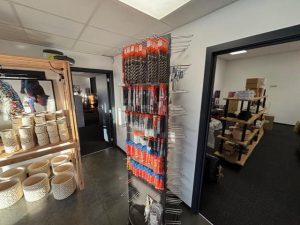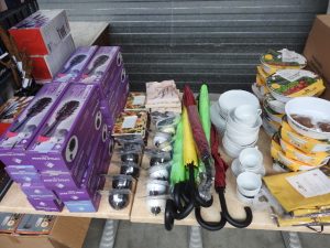 • Grote partij diverse winkelvoorraad keukenbenodigdheden (servies, potten en pannen, bestek, e.d.);