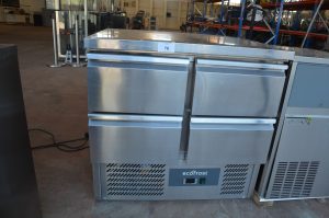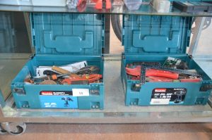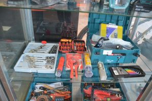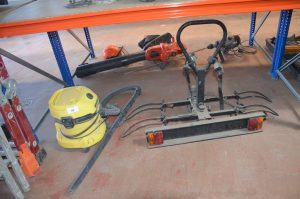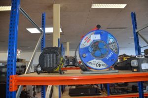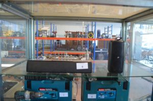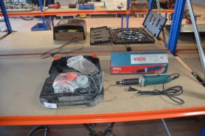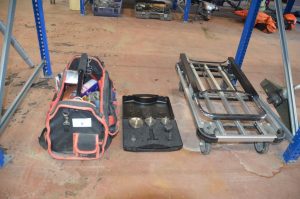 Diverse gereedschappen, flatscreen tv's, industriële oven, koelwerkbank, ijsblokjesmachine, ...